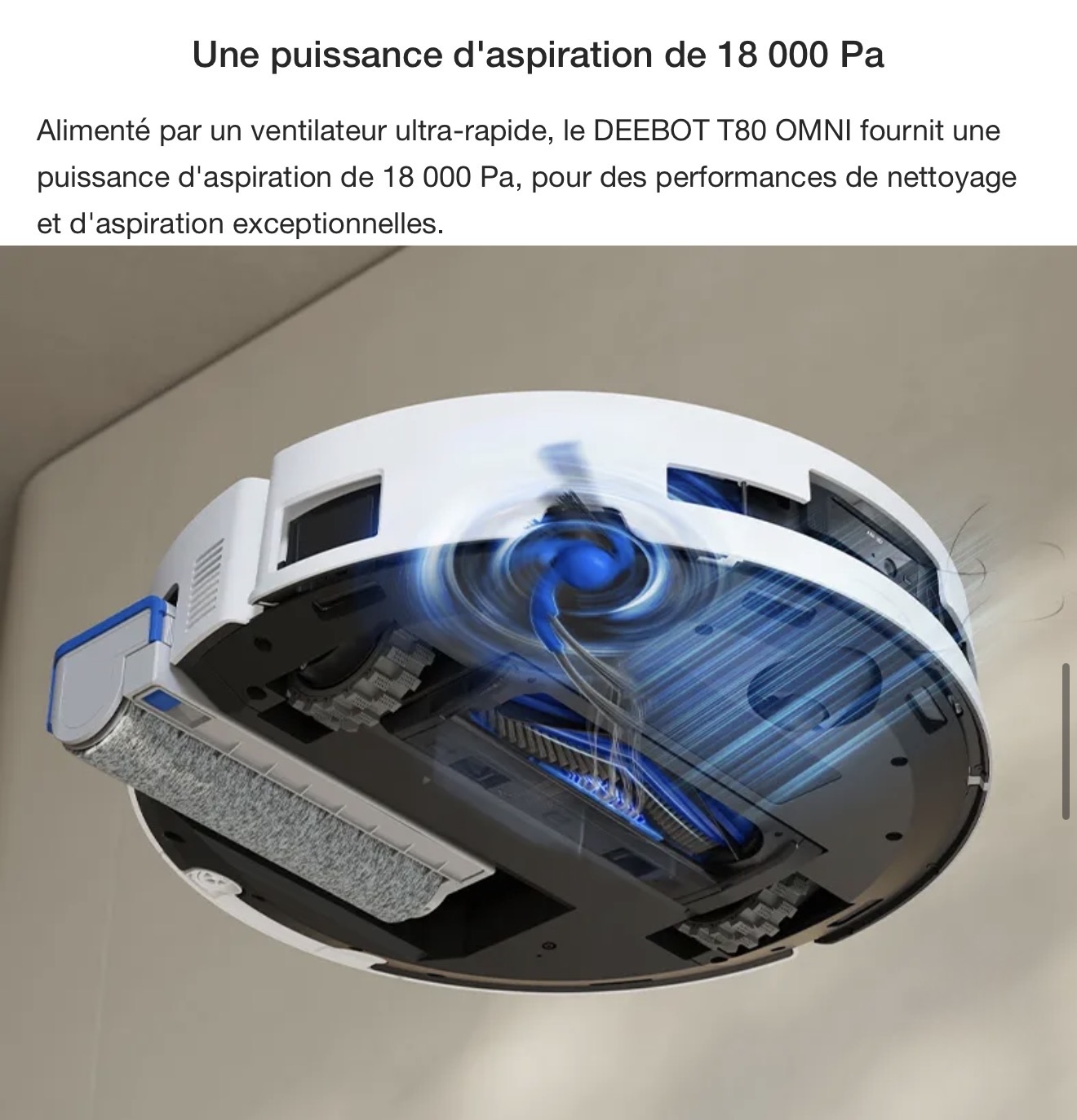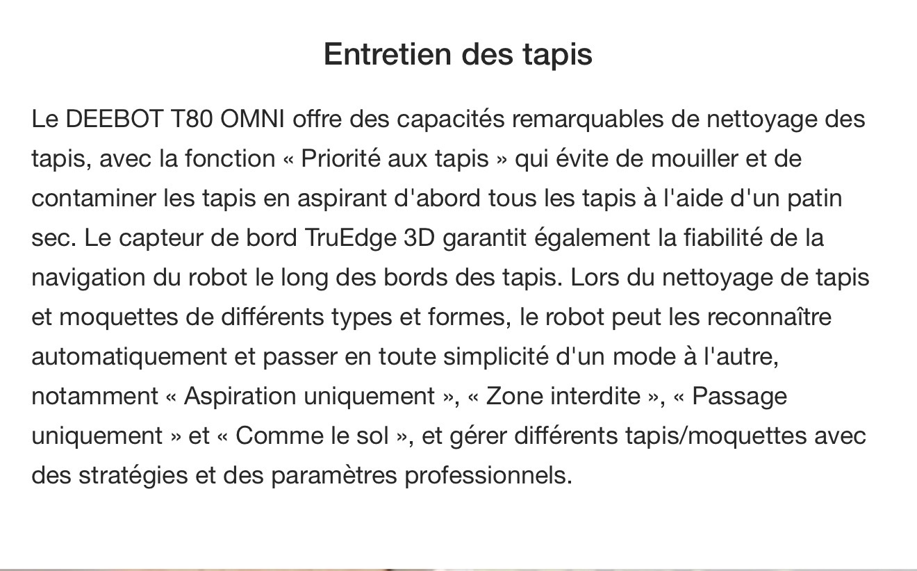 ECOVACS DEEBOT T80 OMNI Aspirateur Robot Laveur Blanc (Puissant, IA, Tapis)