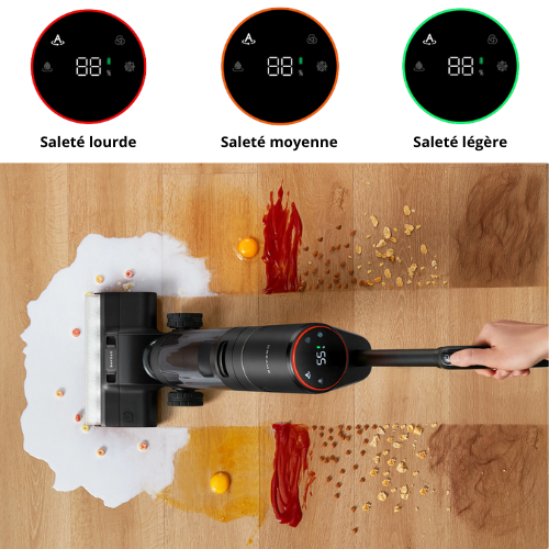 Le capteur intelligent du H13 Pro adapte la puissance d'aspiration pour traiter efficacement différents types de salissures. Ainsi, la puissance de nettoyage appropriée est utilisée pour de meilleurs résultats, sans réglage manuel.
