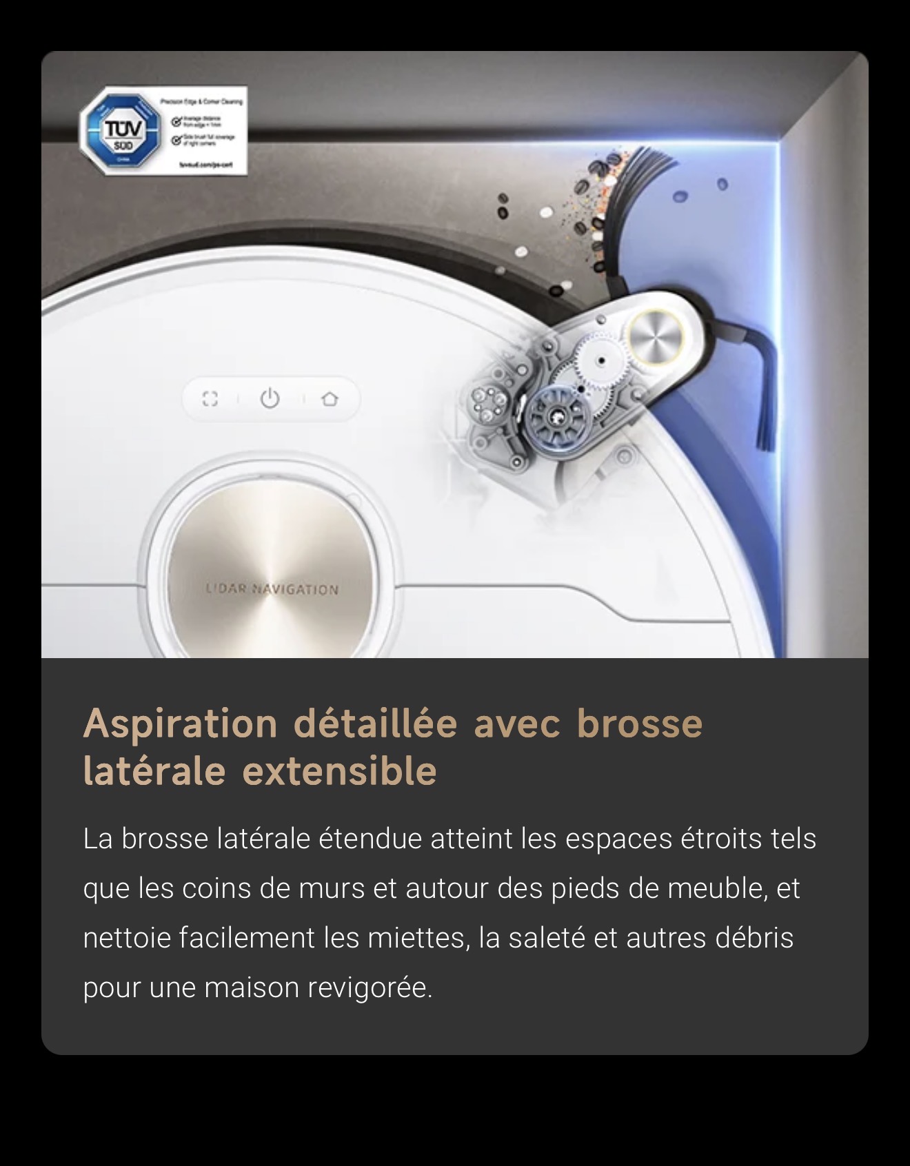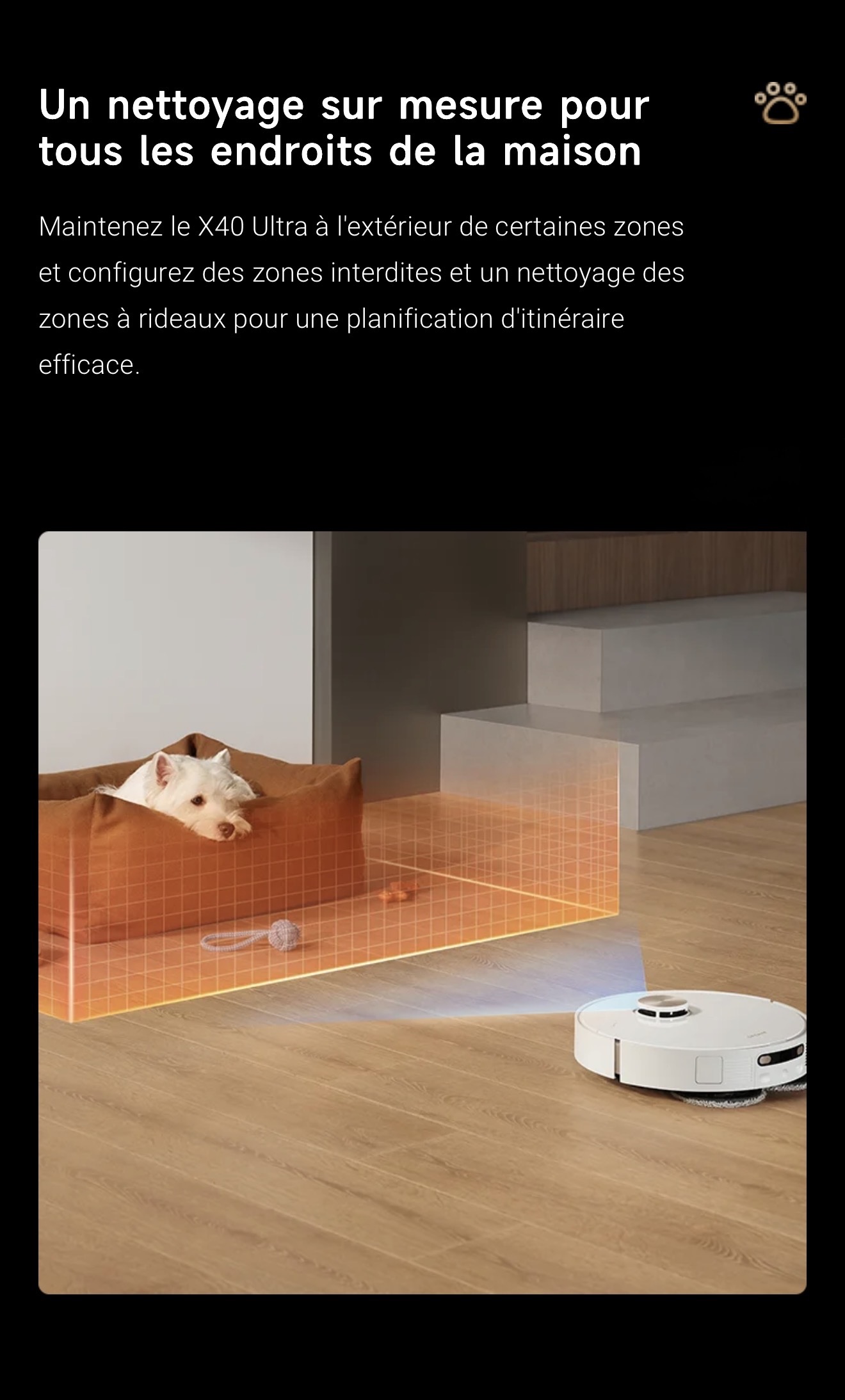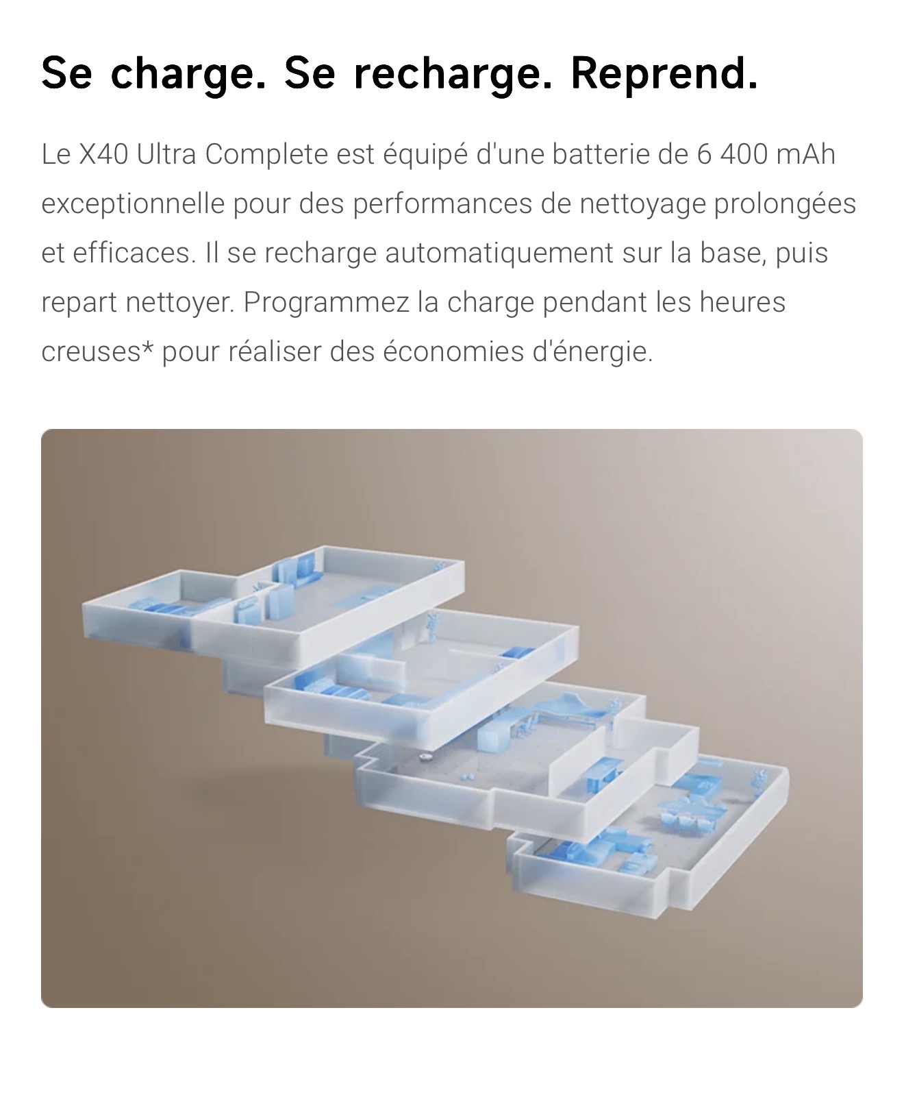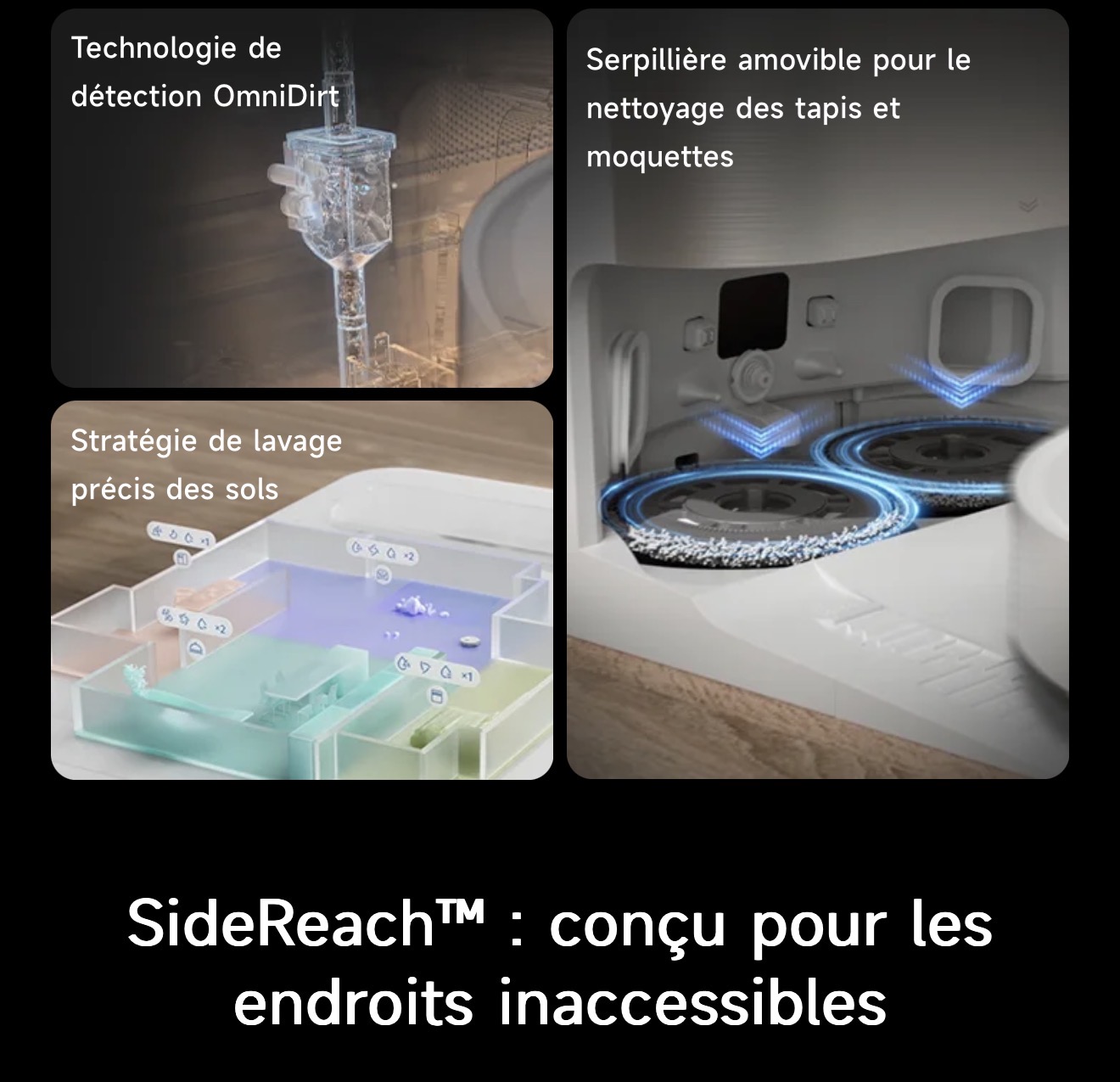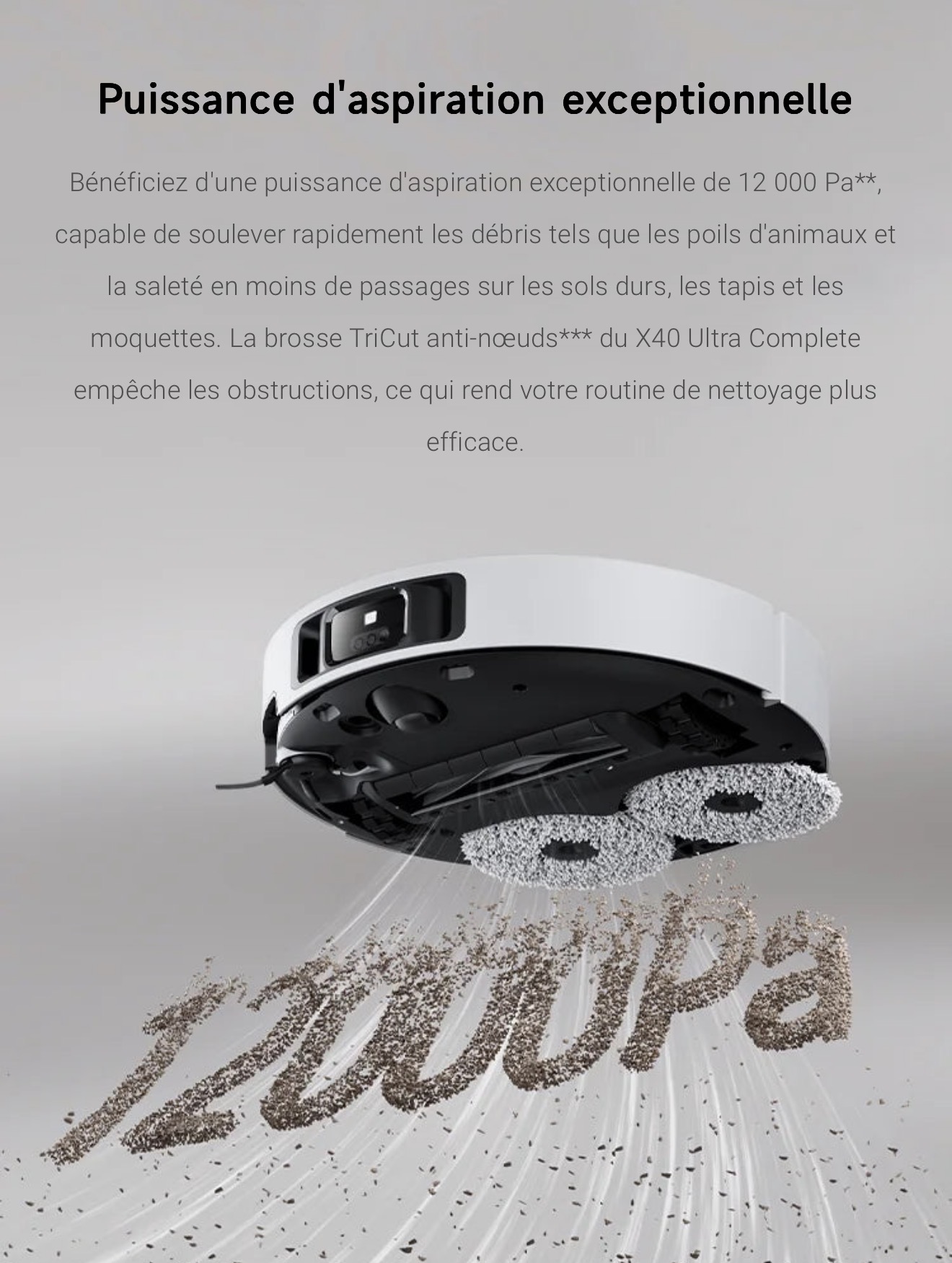 Le capteur couleur mesure précisément la saleté de l'eau, garantissant ainsi un second lavage de la serpillière pour éliminer efficacement les taches. Le X40 Ultra Complete double le lavage des sols pour plus de fraîcheur.