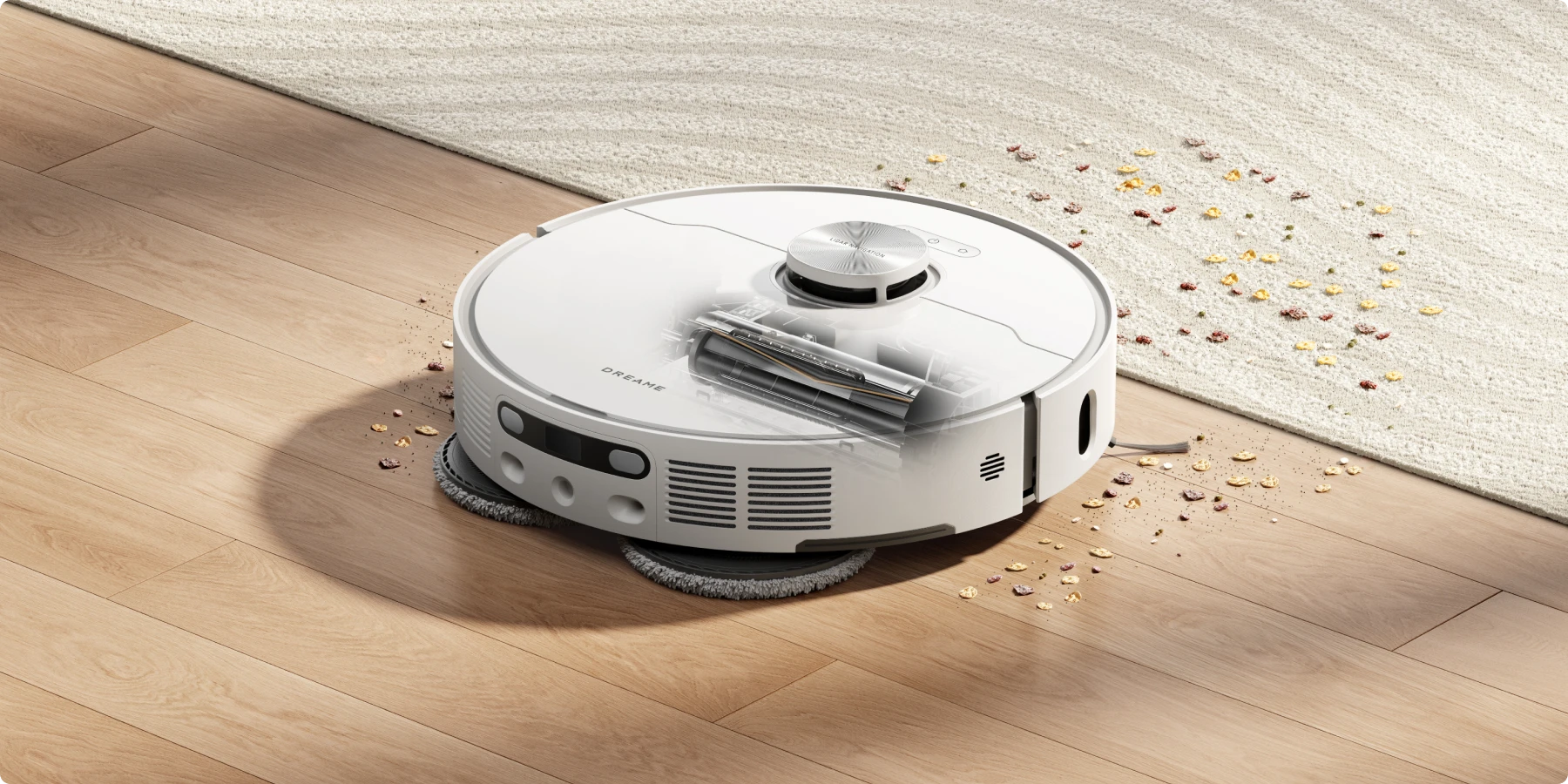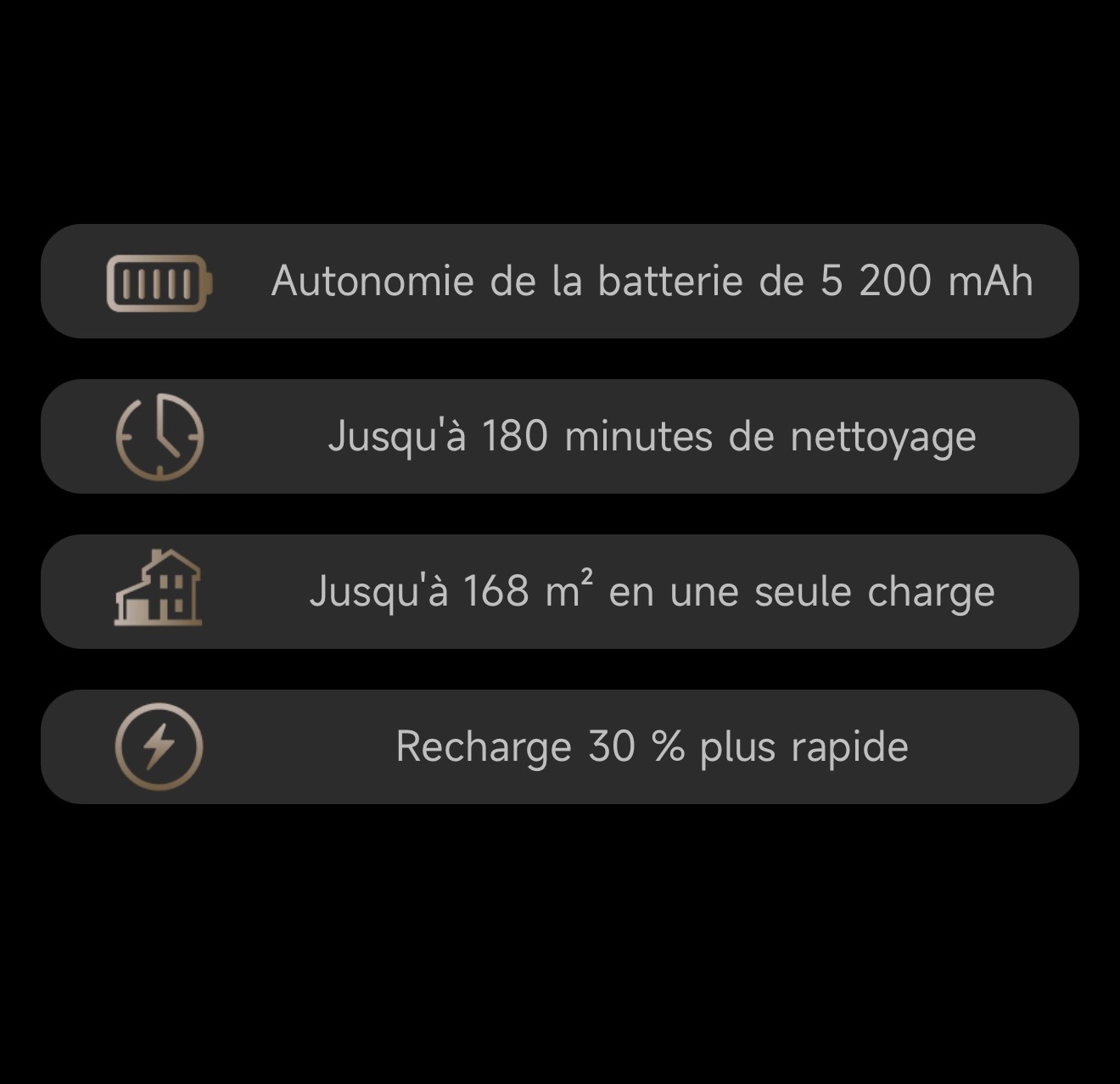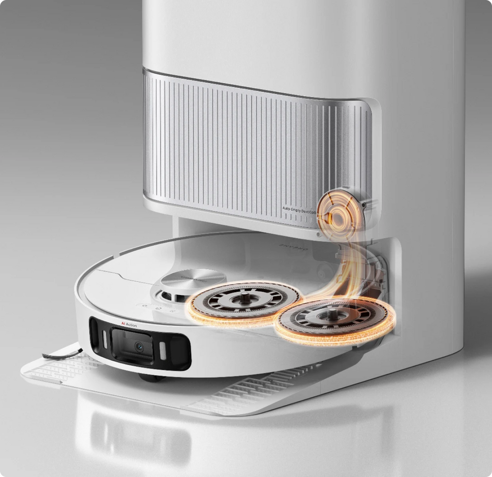 Profitez d'une mise à niveau polyvalente pour une maison plus propre. Grâce à une aspiration puissante de 19 000 Pa*, à une brosse principale en caoutchouc relevable et à une brosse TriCut, le robot aspirateur élimine les petites particules de poussière, les gros débris des tapis/moquettes et des sols et réduit la formation de nœuds. Grâce au lavage automatique des serpillières avec de l'eau chaude à 75 °C* et à la plaque de lavage avec nettoyage automatique avancée, l'entretien post-lavage est grandement facilité.