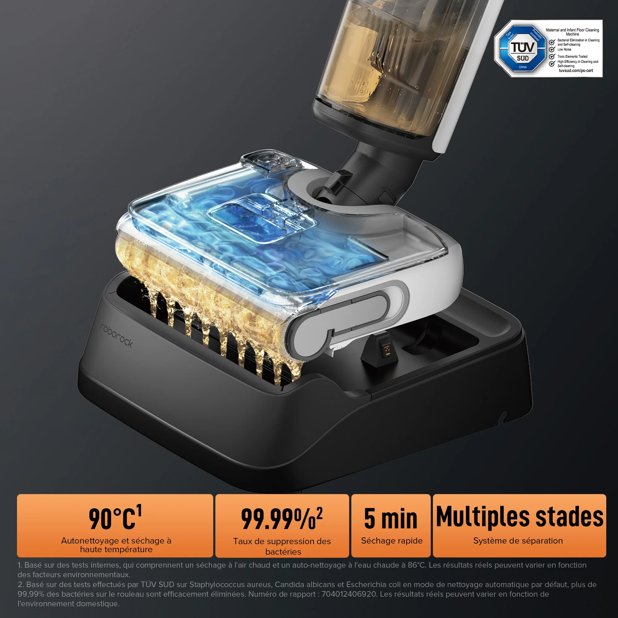 6. Volume du réservoir d'eau : réservoir d'eau propre de 870 ml et réservoir d'eau sale de 720 ml.